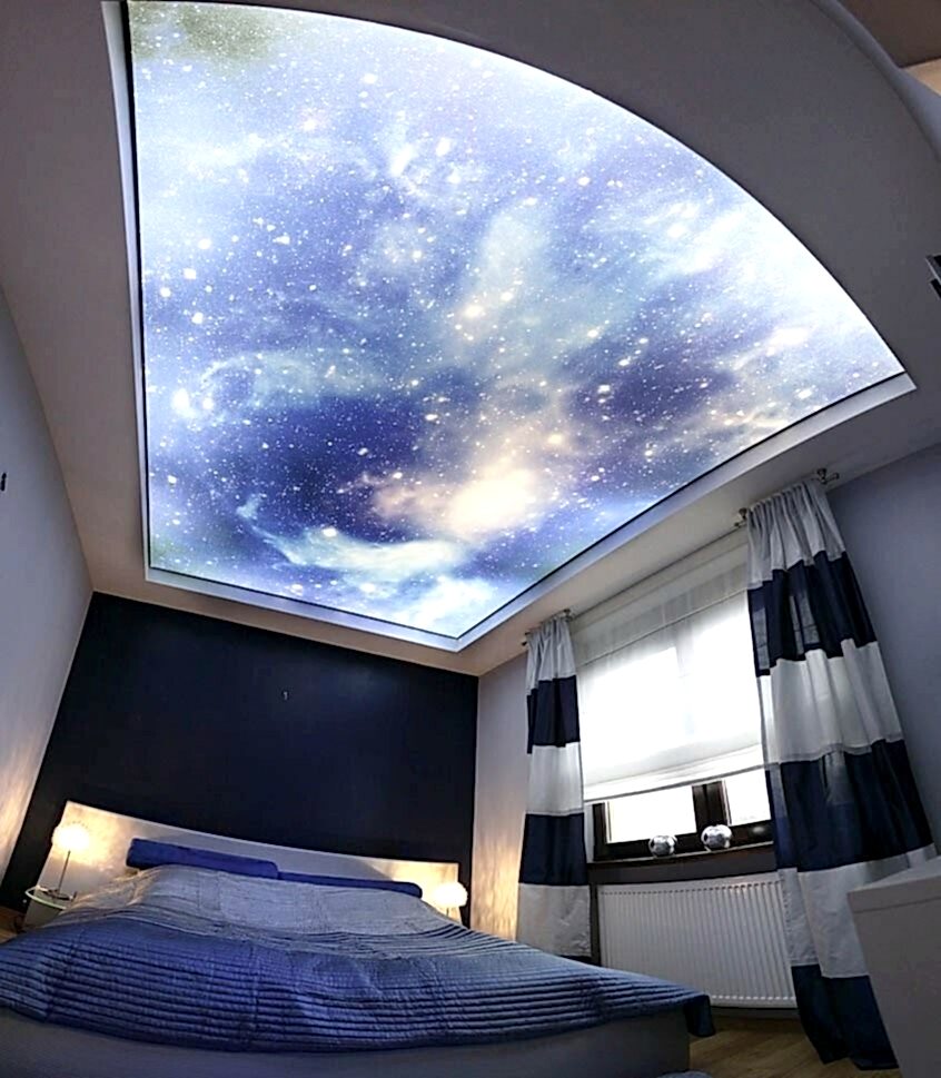 Созерцание над головой ночного небосвода помогает расслабиться. Дети глядя на него быстрее засыпают, а взрослым он создает Pin Up атмосферу каждый день.