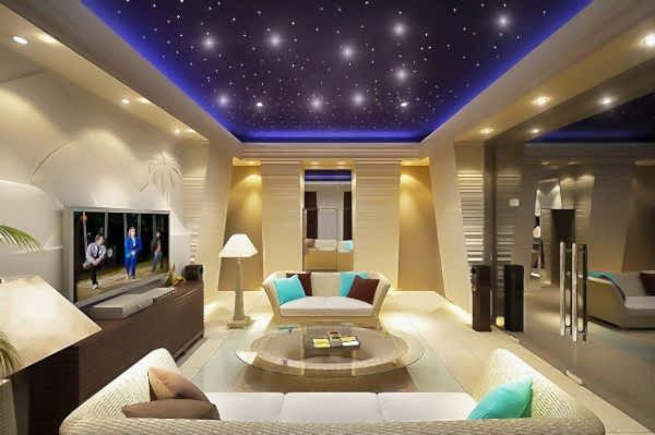 Самым сложным будет монтаж потолка с оптоволоконными нитями. Каждую из которых мастер выводит на поверхность вручную, закрепляя ее между черновой поверхностью и пленкой. Полотно с реалистично фотопечатью подсвечено изнутри отдельными «звездами»-нитями, а если Pin Up технологию проектора, меняющего яркость и оттенок освещения, можно добиться вращающихся над головой галактик.
